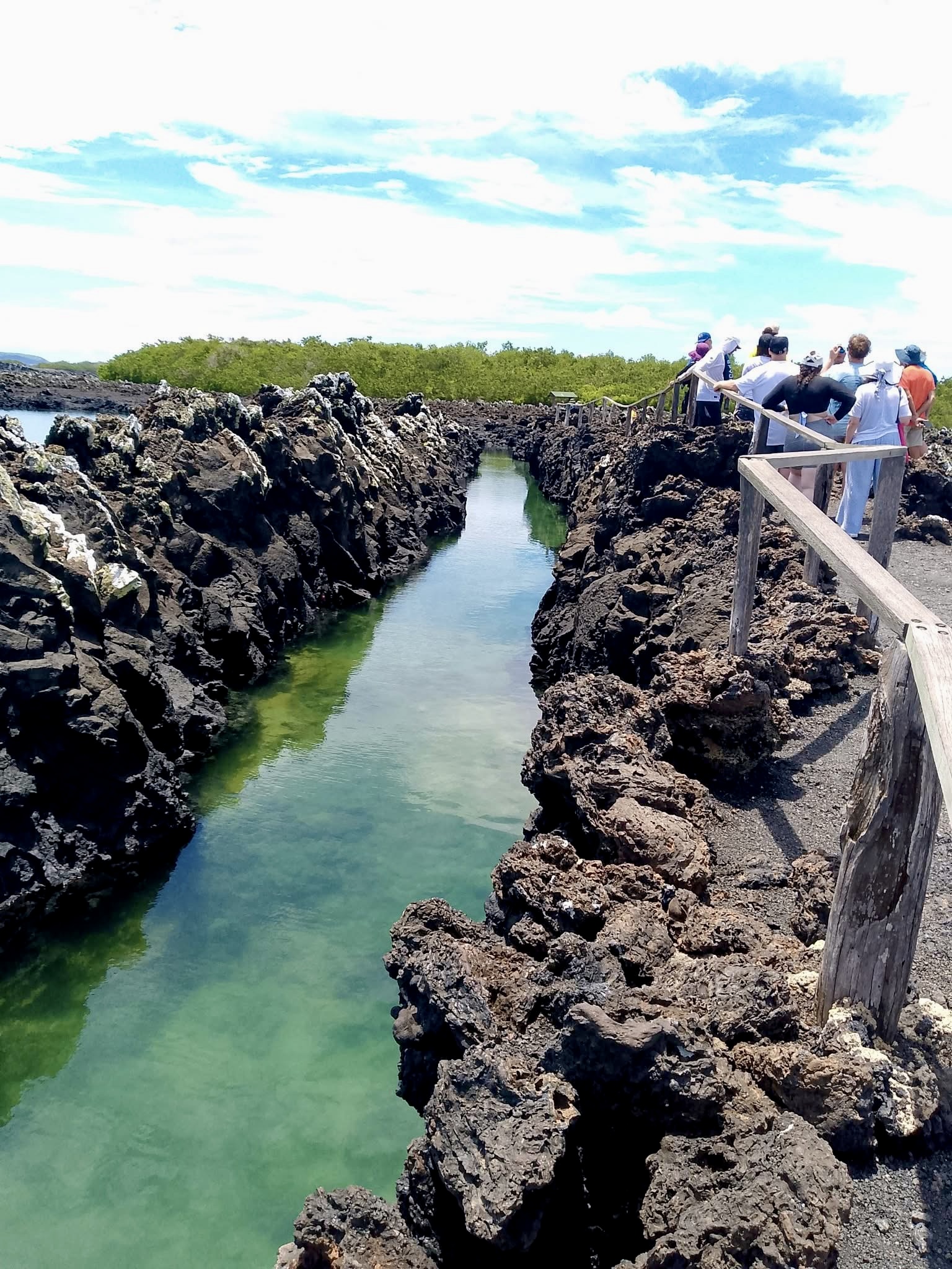 Luego de tomar nuestra embarcación en muy poco minutos arribaremos a Las Tintoreras: pequeño islote ubicado frente a Puerto Villamil, en donde podrán observar pingüinos y piqueros de patas azules, así como también realizaremos una corta caminata de aproximadamente 30 minutos para visitar una grieta de agua tranquila y transparente en donde observaremos descansando tiburones de aleta blanca o tintoreras quienes les dan el nombre a este lugar, además visitaremos colonias de iguanas marinas y lobos marinos.